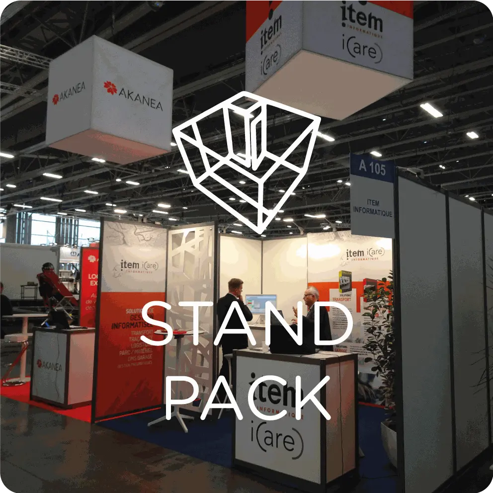 Information tarifaire : La totalité des produits affichés s'entend hors taxes pour la durée du salon, livrée et repris sur le stand. TVA appliquée 20%.